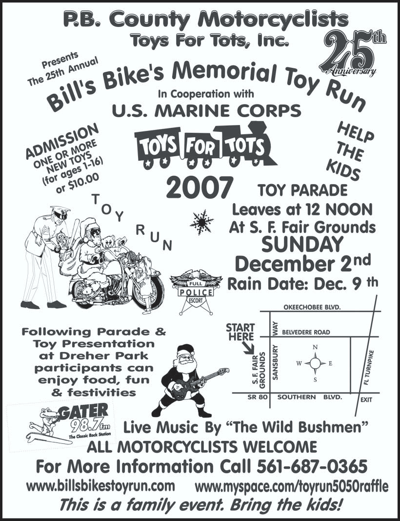 Following the Motorcycle Parade & Toy Presentation at Dreher Park; Participants can enjoy food, fun & festivities. LIVE MUSIC