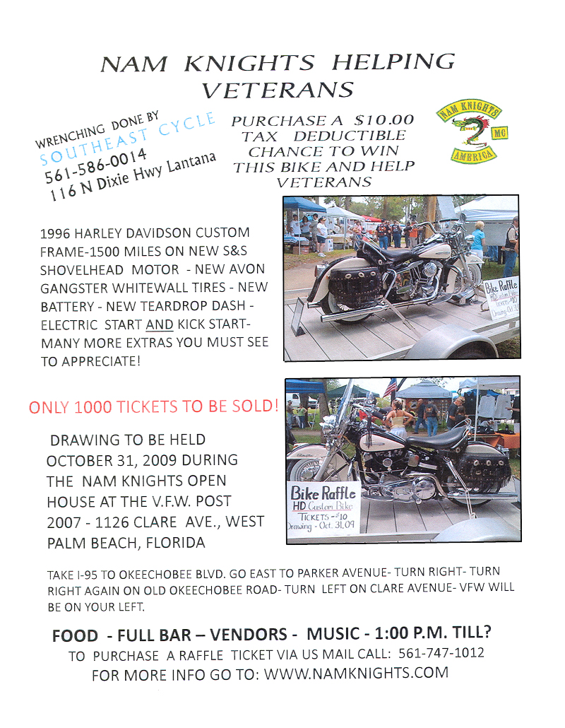 Motorcycle Registration Fees: $20.00 includes (1) Raffle Ticket and a Fantastic Bar-B-Que Lunch.